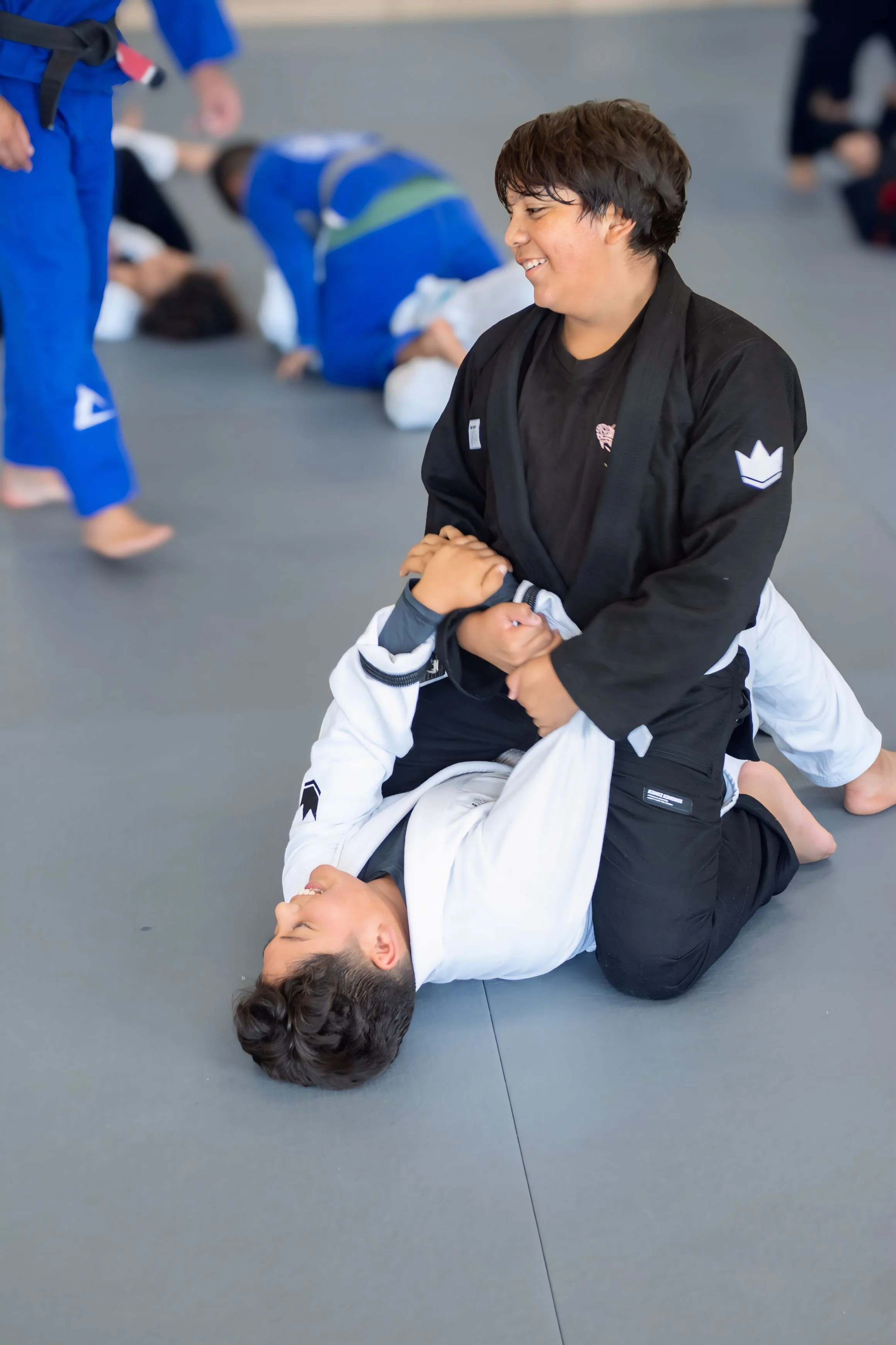 Yes. Safety is our top priority. All techniques taught are age-appropriate and supervised. We maintain a 5:1 student-to-coach ratio, and all staff are background-checked and first aid certified. Jiu jitsu is a grappling art — no punching or kicking.